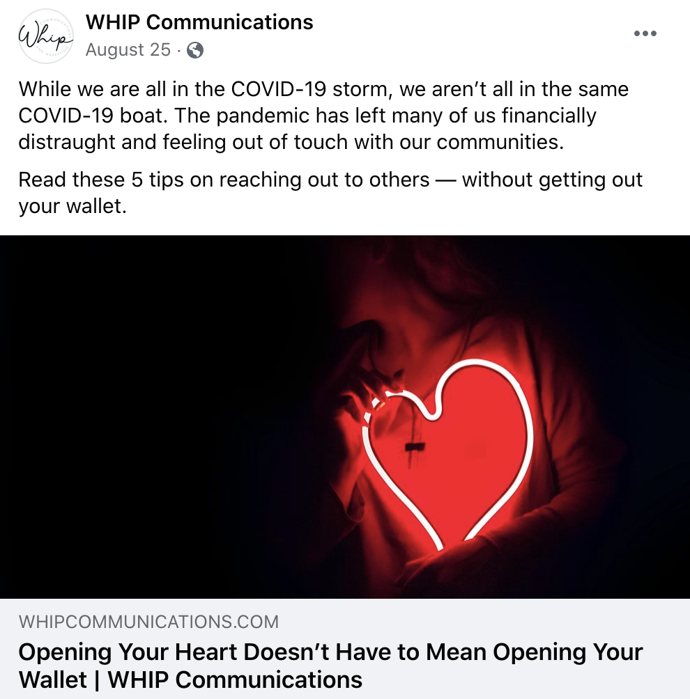 - Opening Your Hearts Doesn’t Have To Mean Opening Your Wallet | WHIP Communications